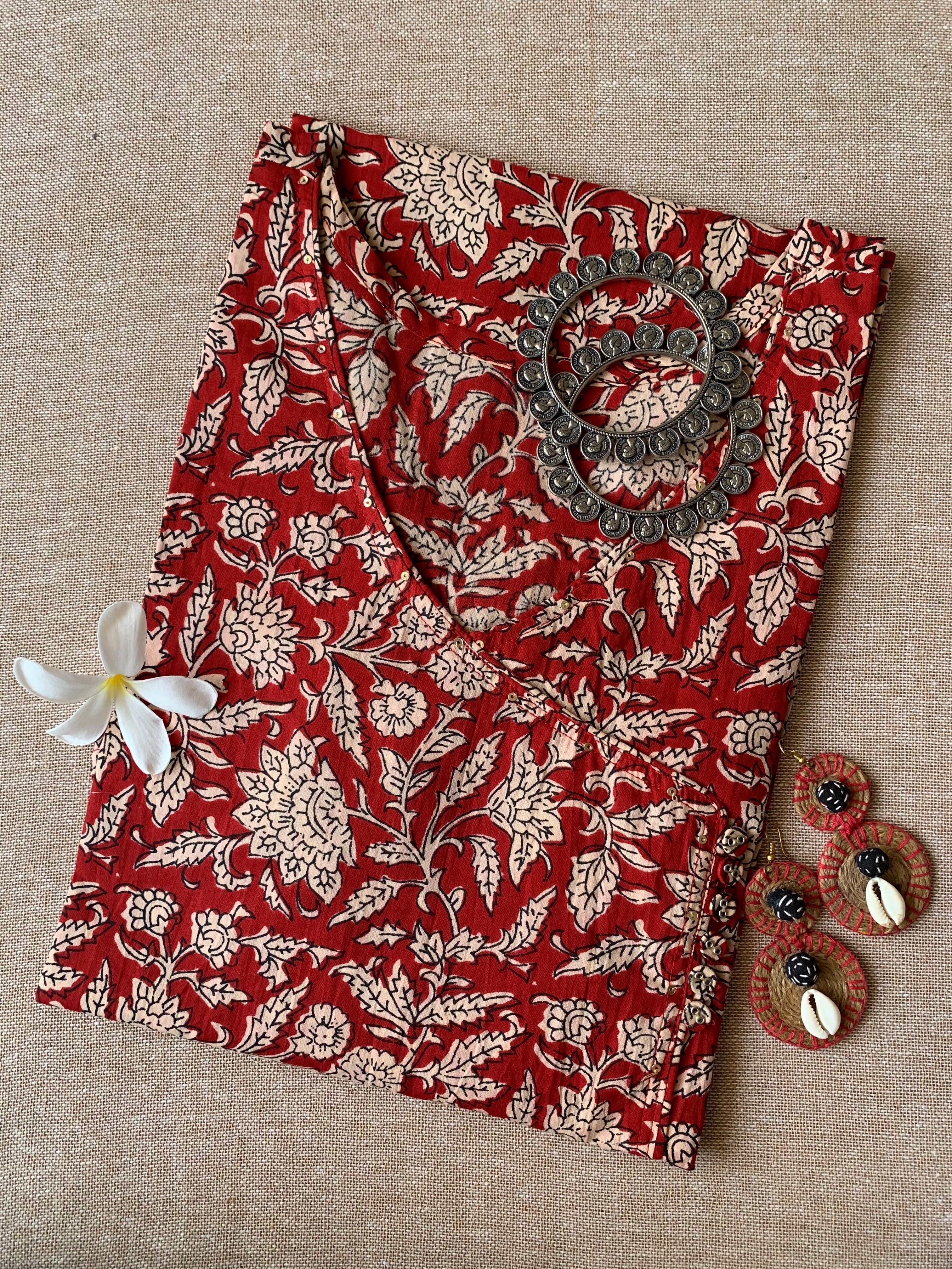 Base Color:Maroon Fabric: Pure Cotton Sleeve: 3/4th Kurta Length: 46" Hand Block Printed: Yes CARE: Gentle Machine Wash
