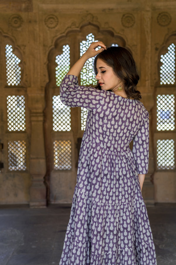 Lavender Pineapple Hand Block Printed Dress