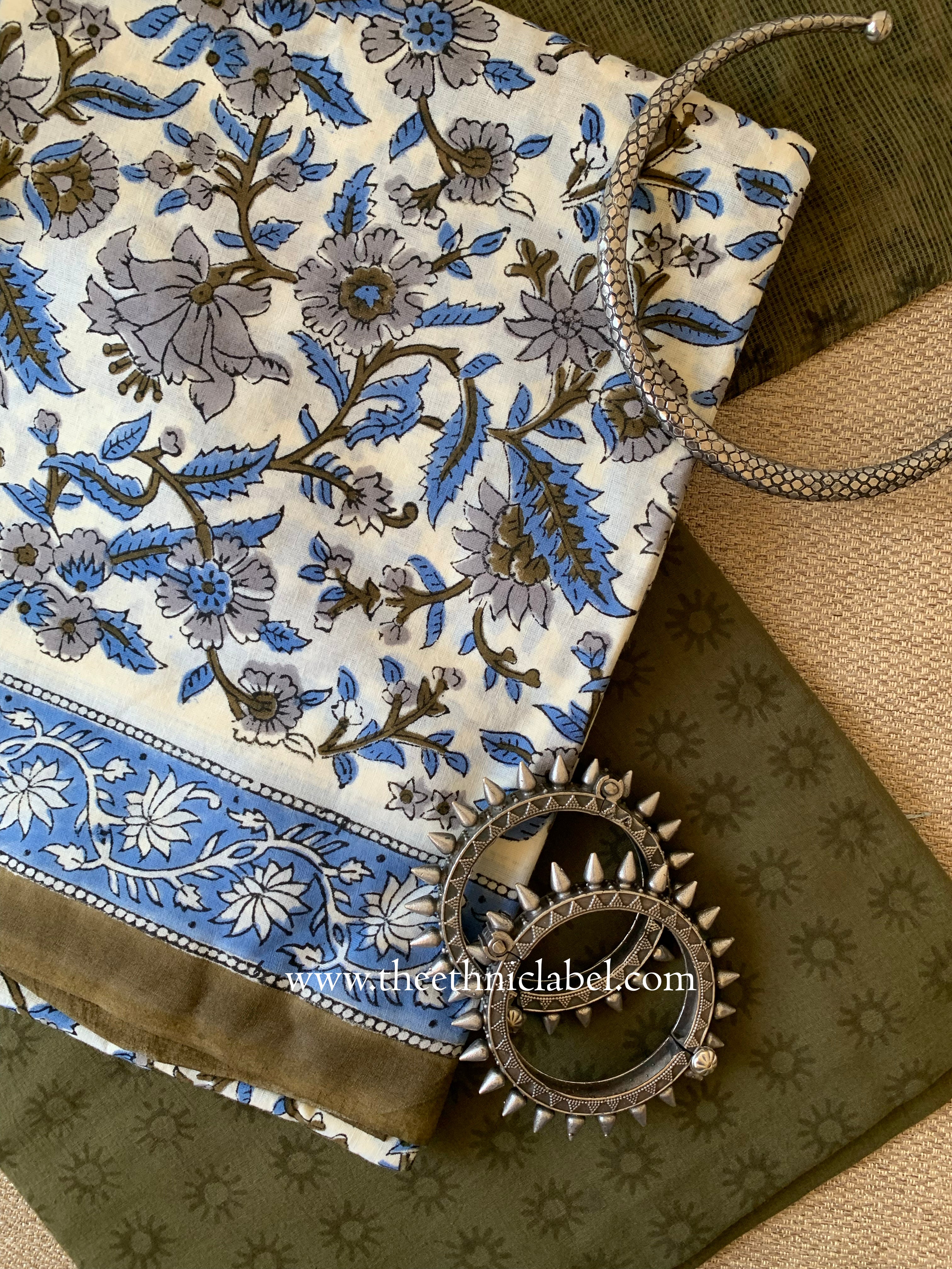 Inspired by the art of Hand Block Printing, this kurta set with dupatta is a piece of sheer elegance. Intricately designed in super fine cotton fabric, this suit set reflects the brightness, the vibrant energy, the radiance through its floral print. The colours are evergreen, and compliment your beauty in a subtle way.