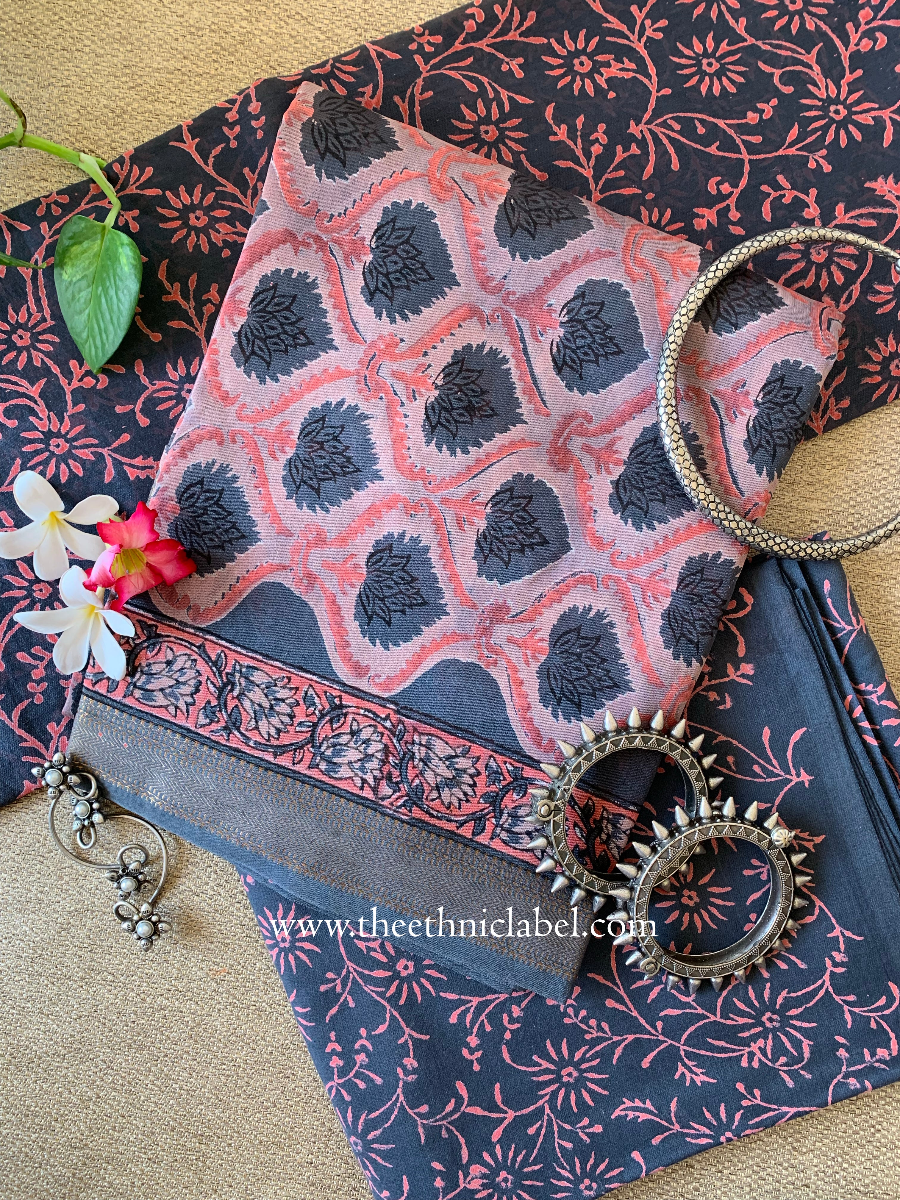 Inspired by the art of Hand Block Printing, this kurta set with dupatta is a piece of sheer elegance. Intricately designed in super fine chanderi fabric, this suit set reflects the brightness, the vibrant energy, the radiance through its floral print. The colours are evergreen, and compliment your beauty in a subtle way.