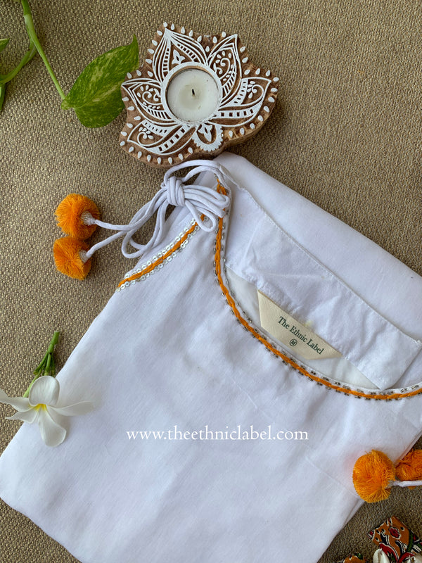 Minimal, classic and chic, this co-ord set is designed for all the days you want to keep things special and subtle. Inspired by the art of embroidery this kurta is a piece of art. The kurta comes with straight pants .