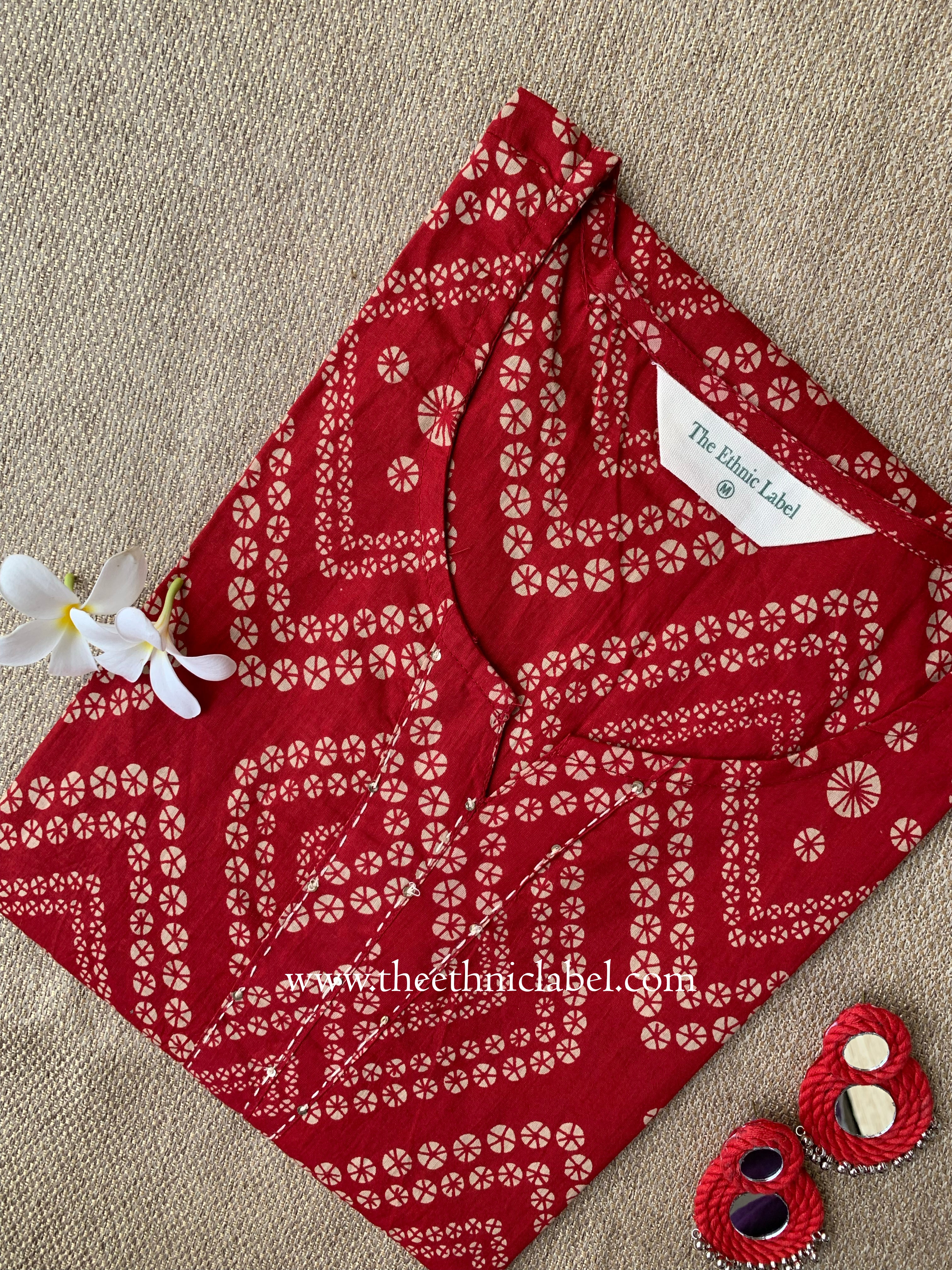 "Hanaya" Bandhani Red Kantha Cotton Kurta