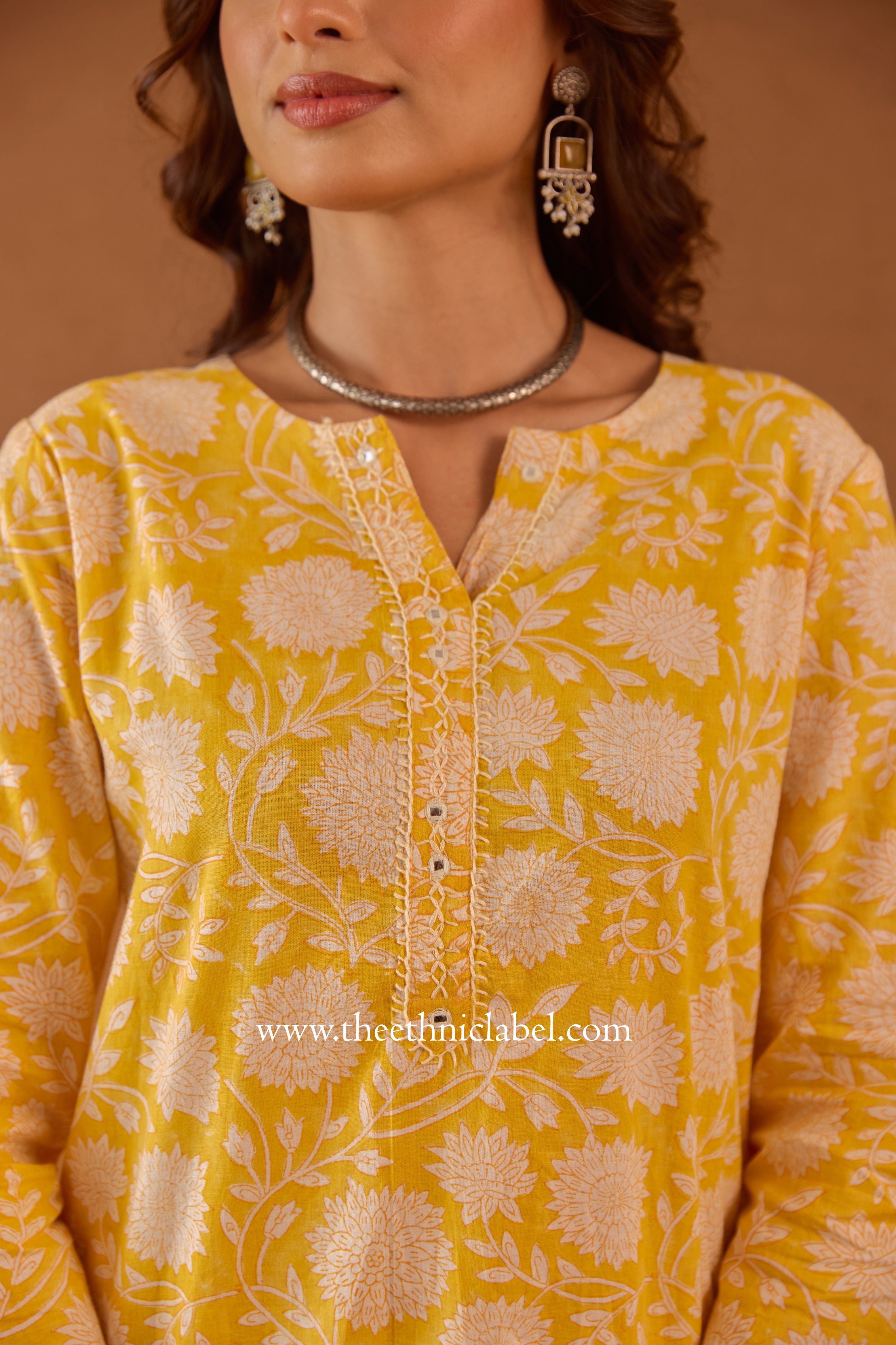 "Prajvala" Hand Embroidered Kurta and Pants Co-ord set - 2pc