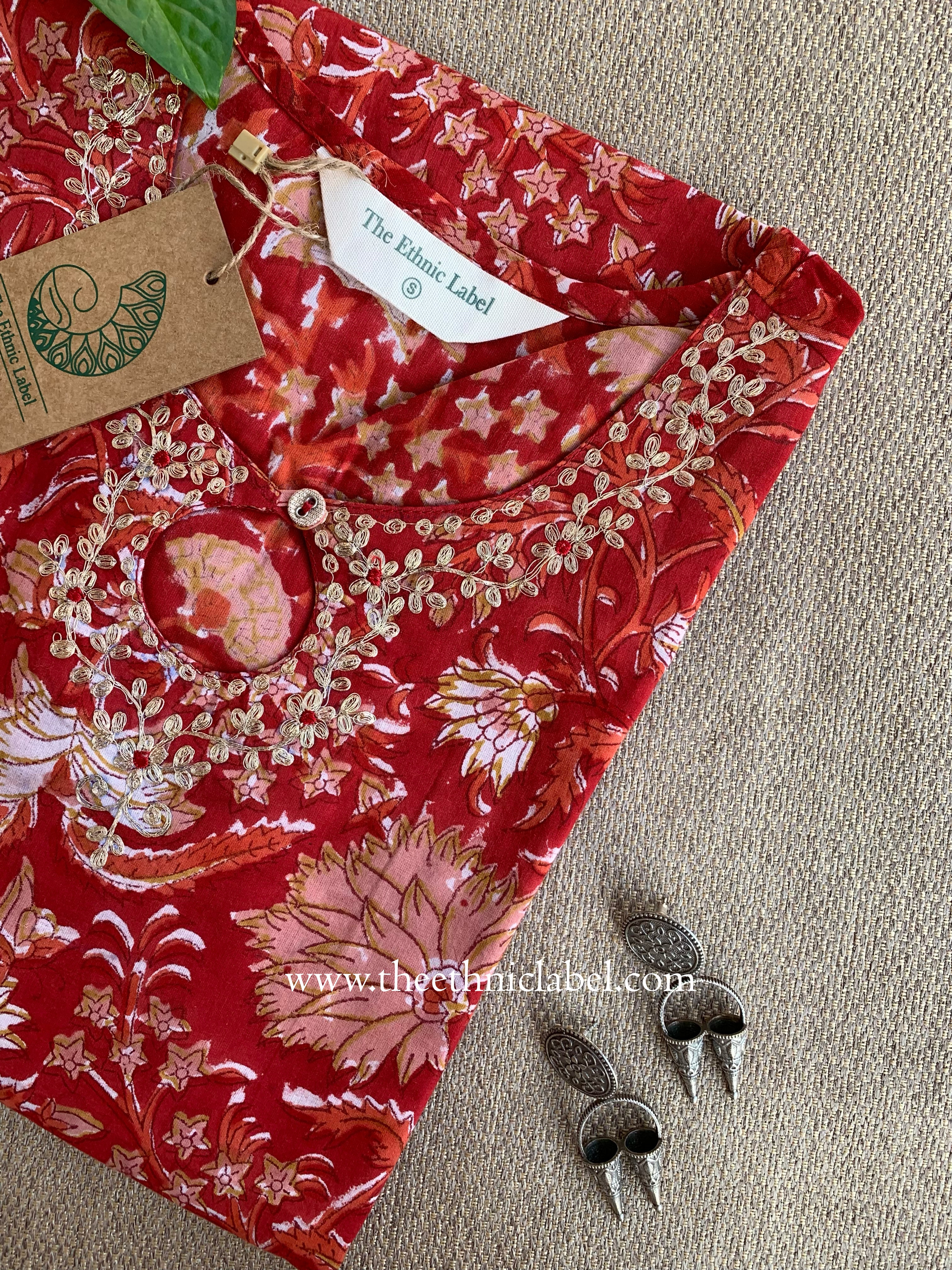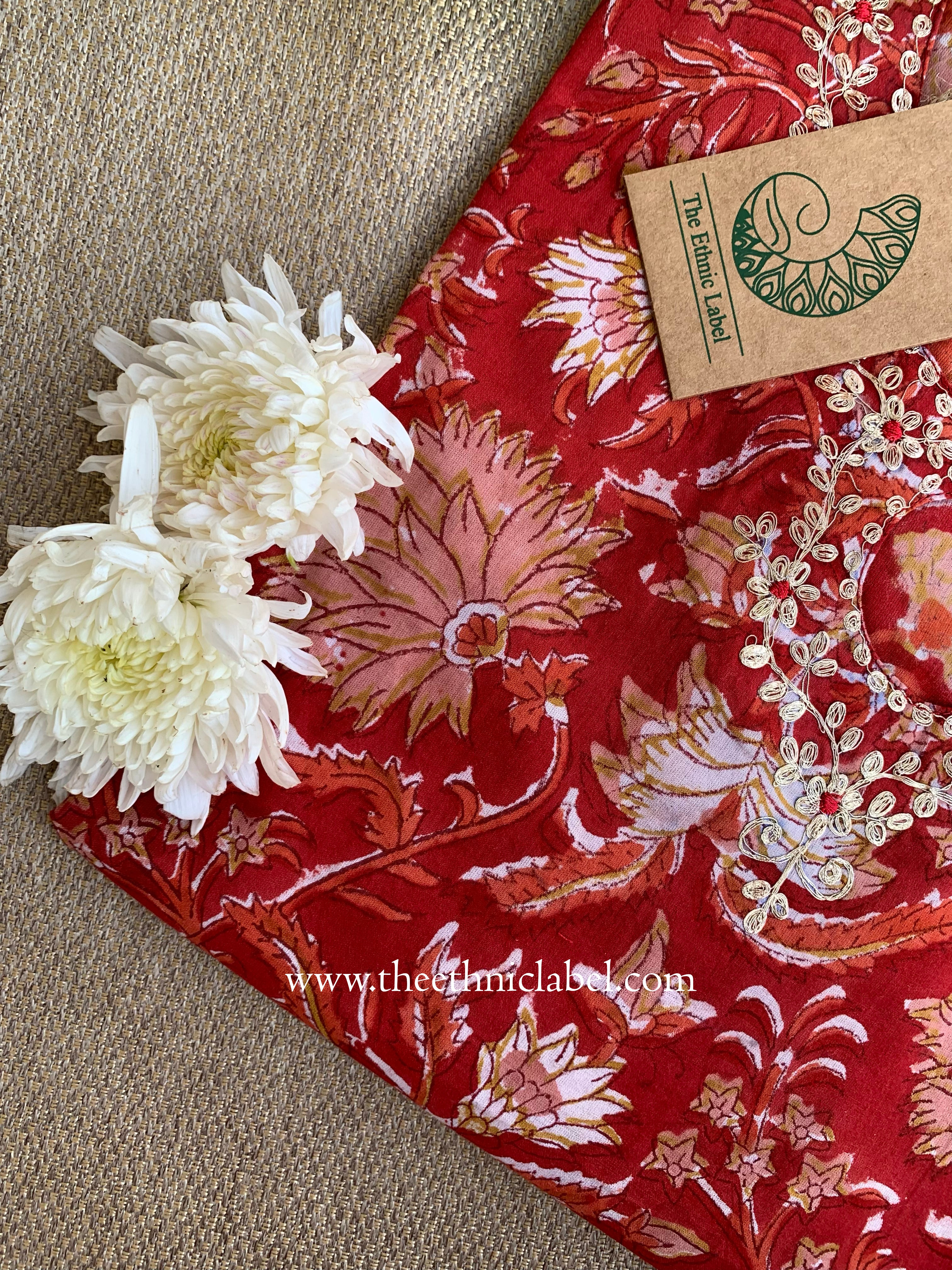 "Rihaa" Hand Block Printed Embroidered Cotton kurta