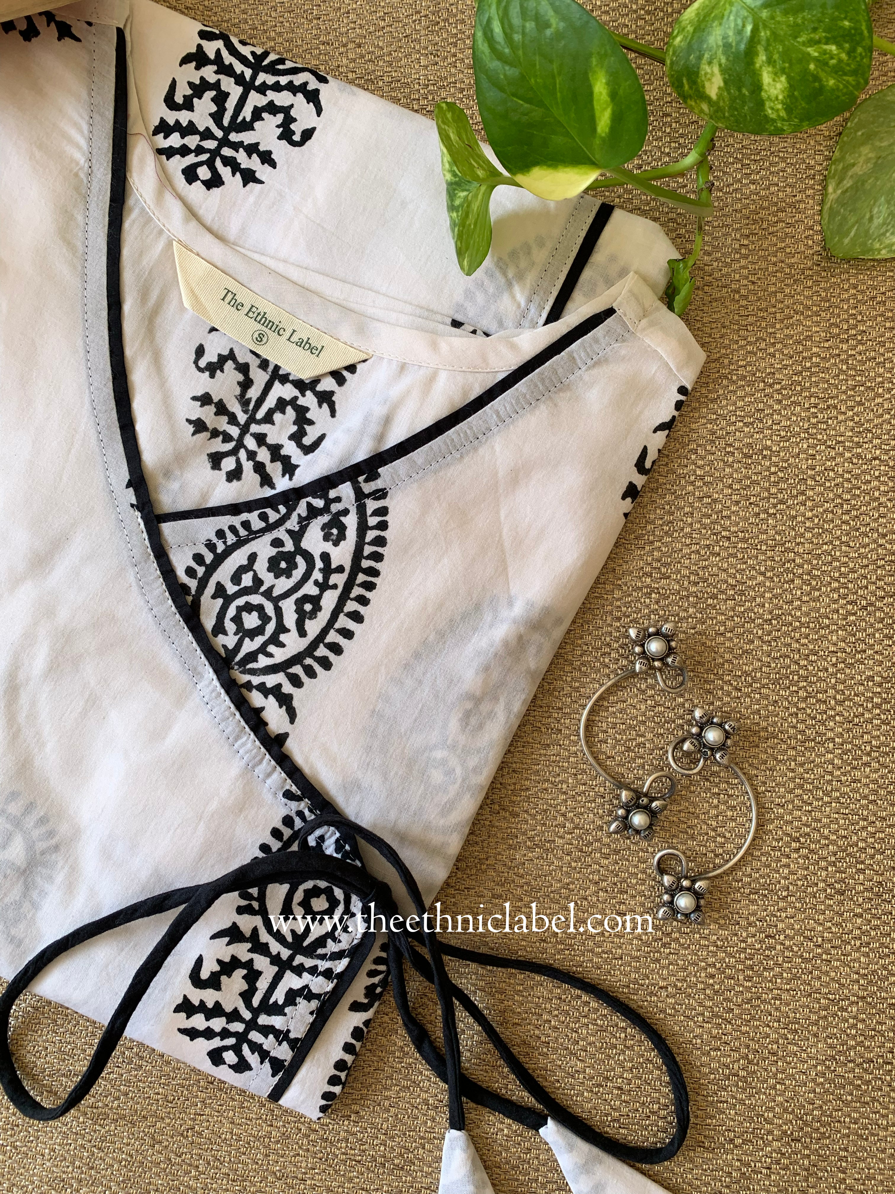"Saral" Hand Block Printed Angrakha Cotton kurta