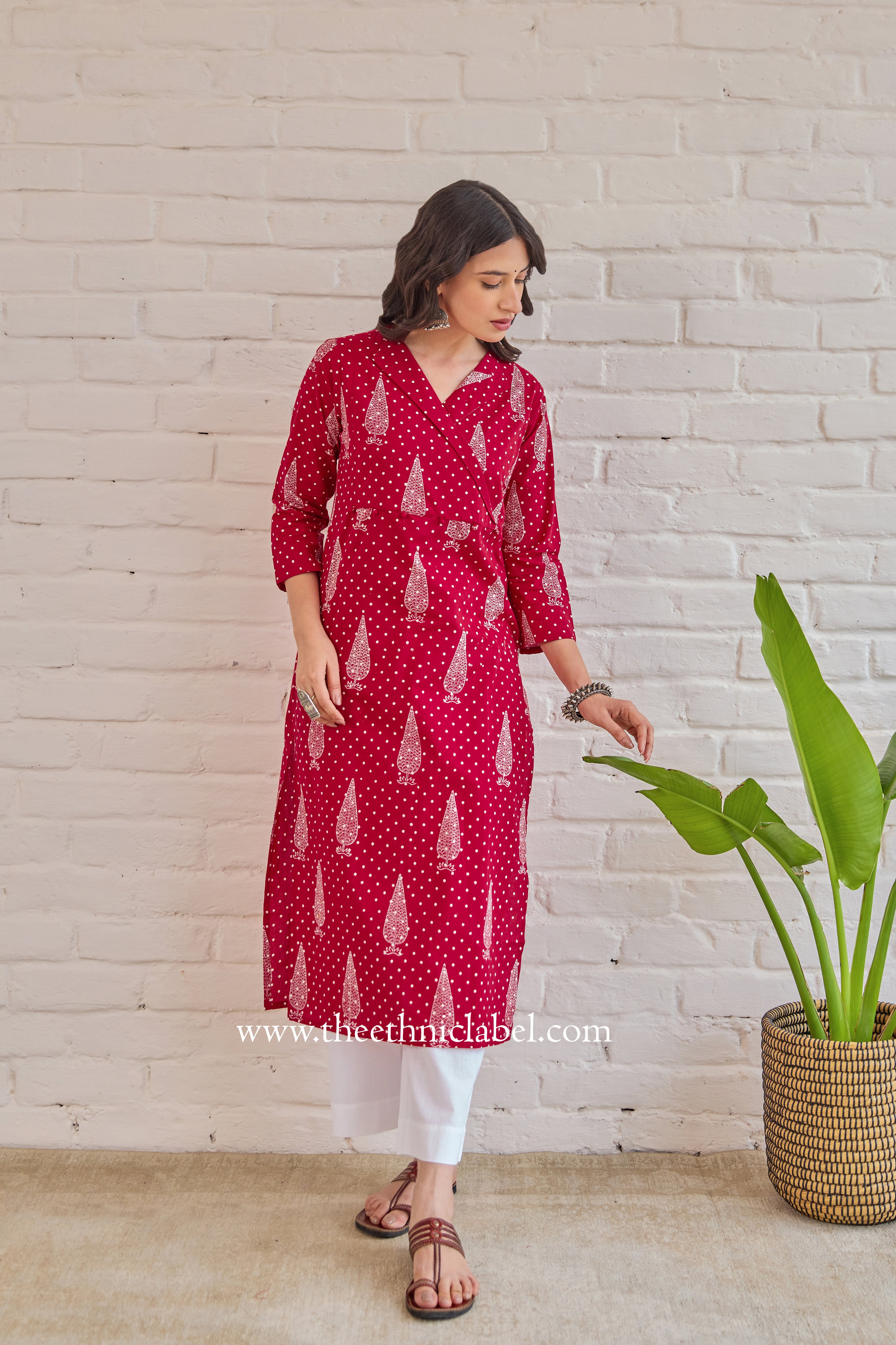 Base Color: Maroon Fabric: Pure Cotton Sleeve: 3/4th Kurta Length: 46" Hand Block Printed: Yes Pocket: Yes CARE: Gentle Hand Wash Pocket :Yes CARE: Gentle Hand Wash