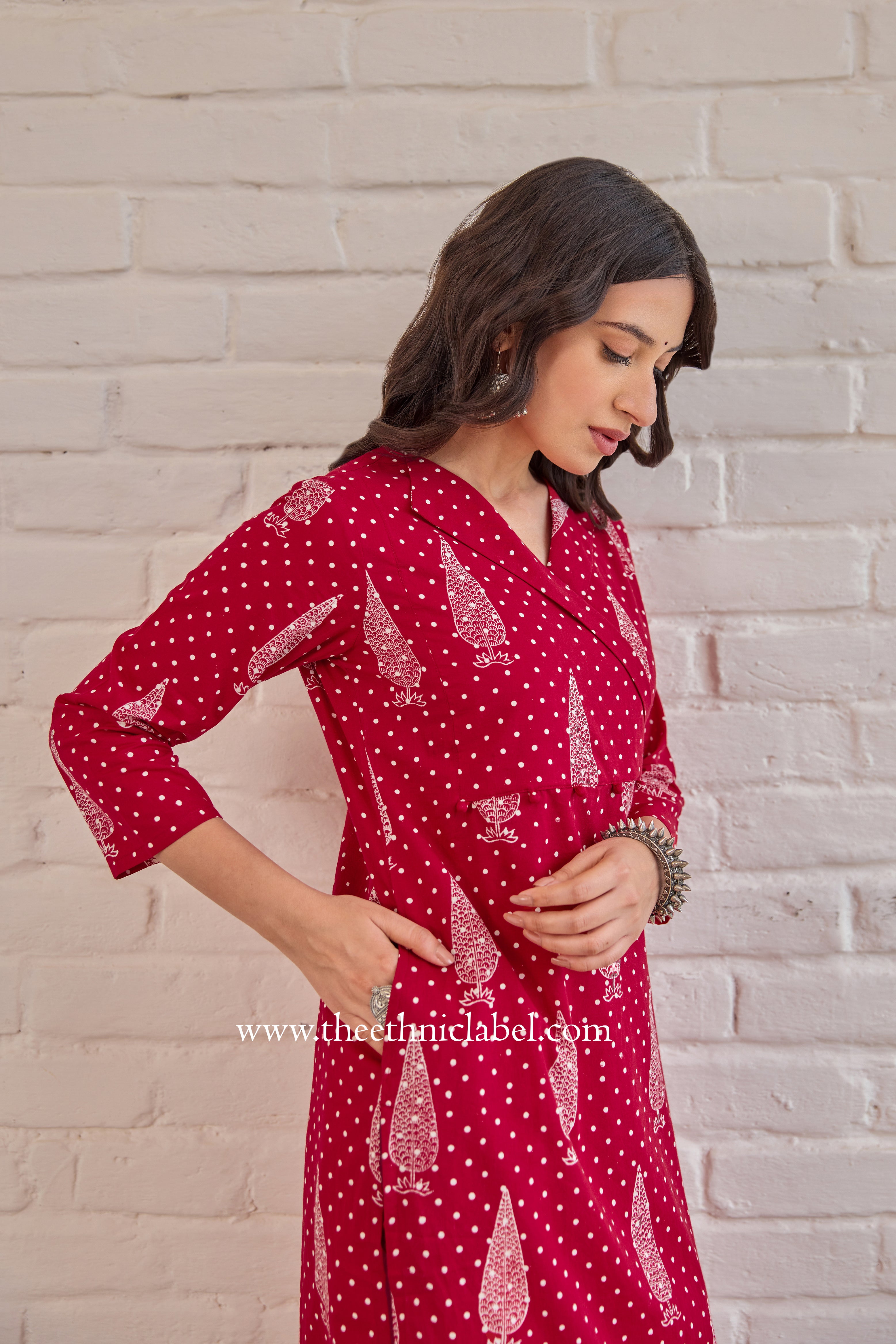 Minimal, classic and chic, this kurta is designed for all the days you want to keep things special and subtle. Inspired by the art of Hand Block Printing, this kurta is a piece of art. The kurta comes with a yolk with an overlapping neckline, that gives an elevated touch to its royal colour and pure cotton fabric.