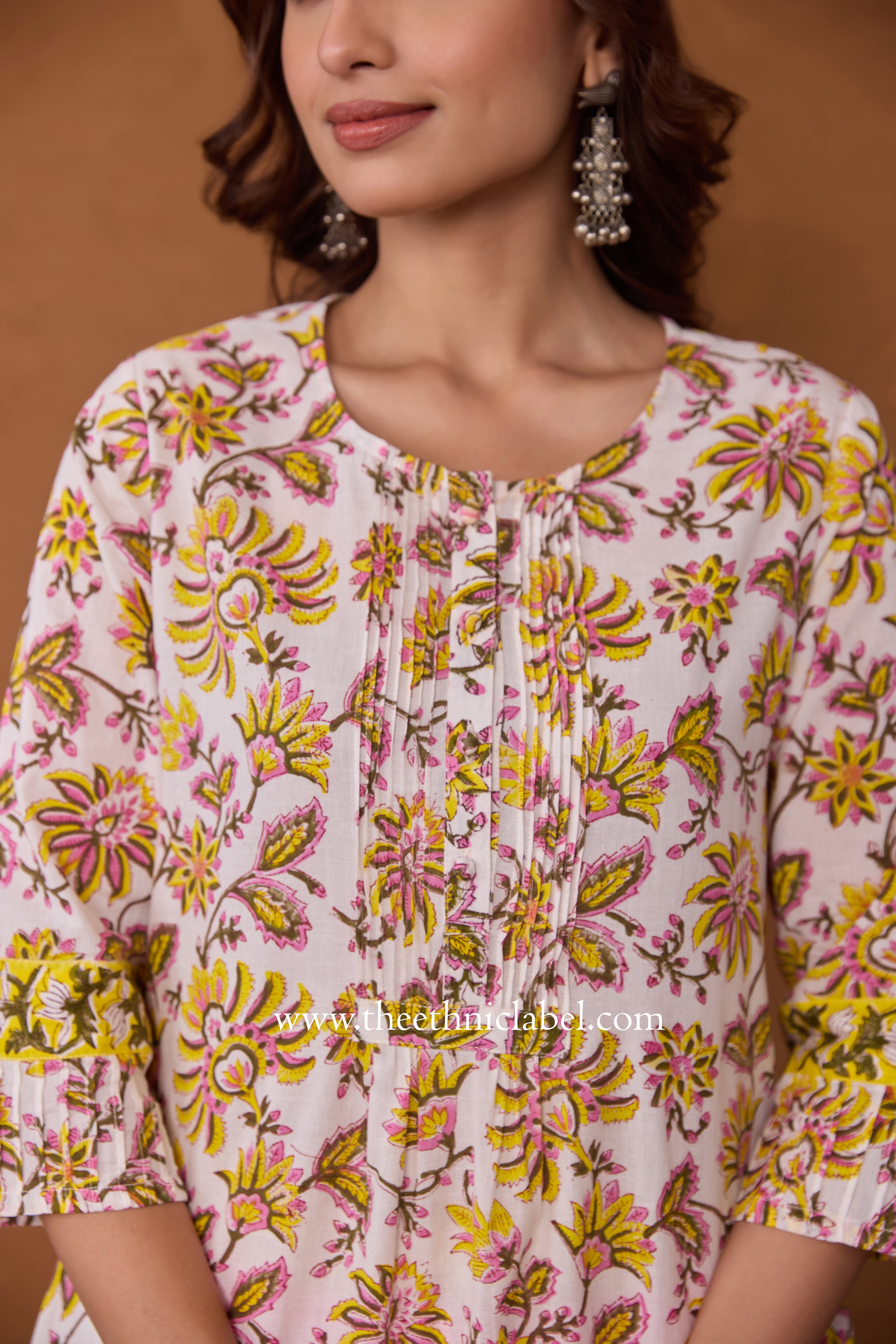 Crafted in pure cotton, our kurtas feature timeless hand block prints inspired by age-old artistry. Each piece carries unique motifs stamped by skilled artisans. Comfortable yet elegant, they are perfect for everyday wear with a touch of heritage.This kurta has a unique printex pattern in the yolk adding to the extra charm of the look.