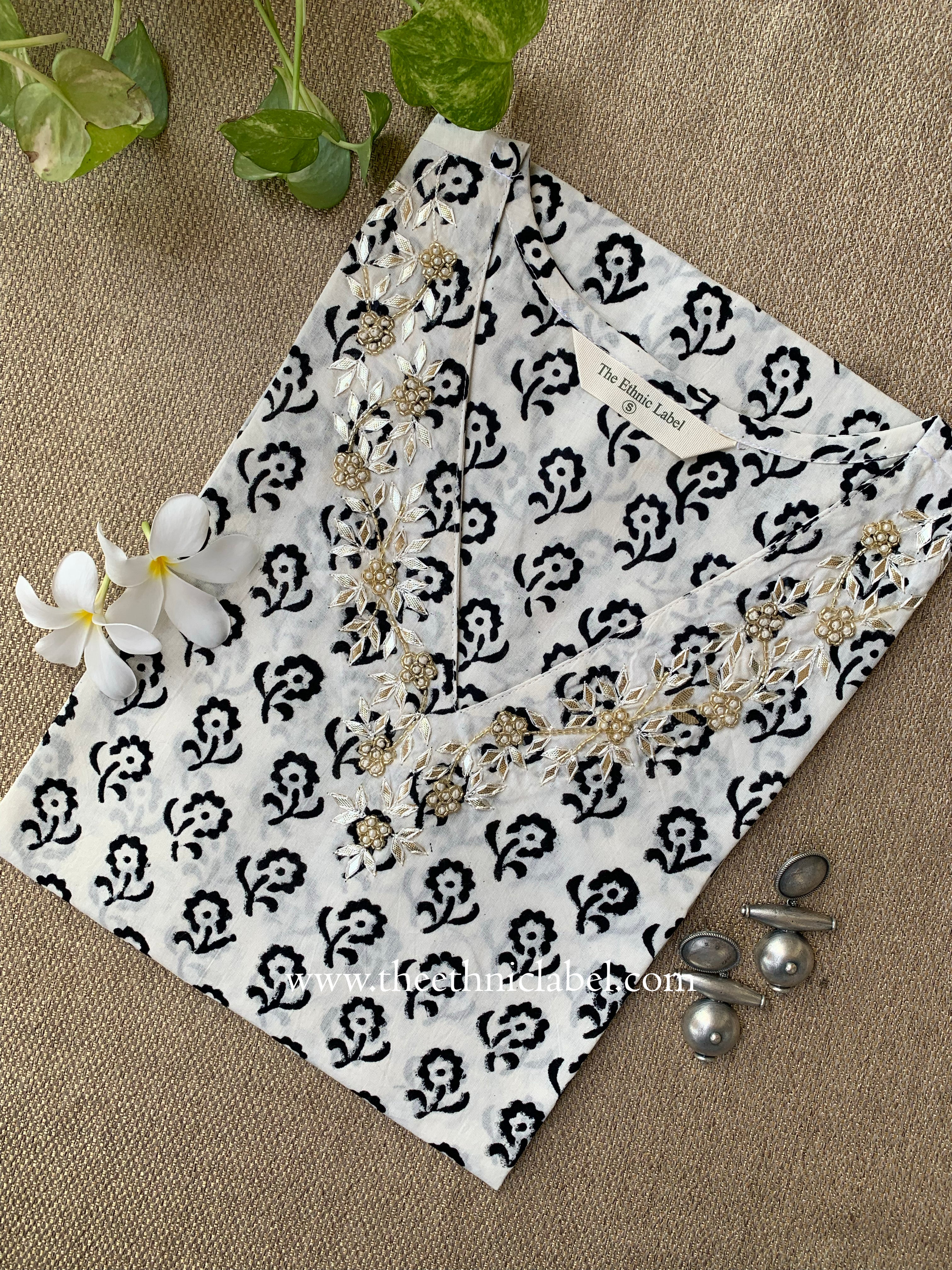 "Phool" Hand Embroidered Block Printed Cotton kurta