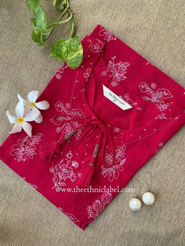 "Rachna" Hand Embroidered Block Printed Cotton kurta