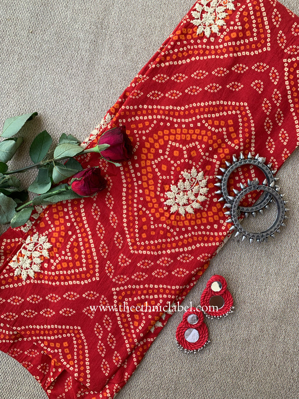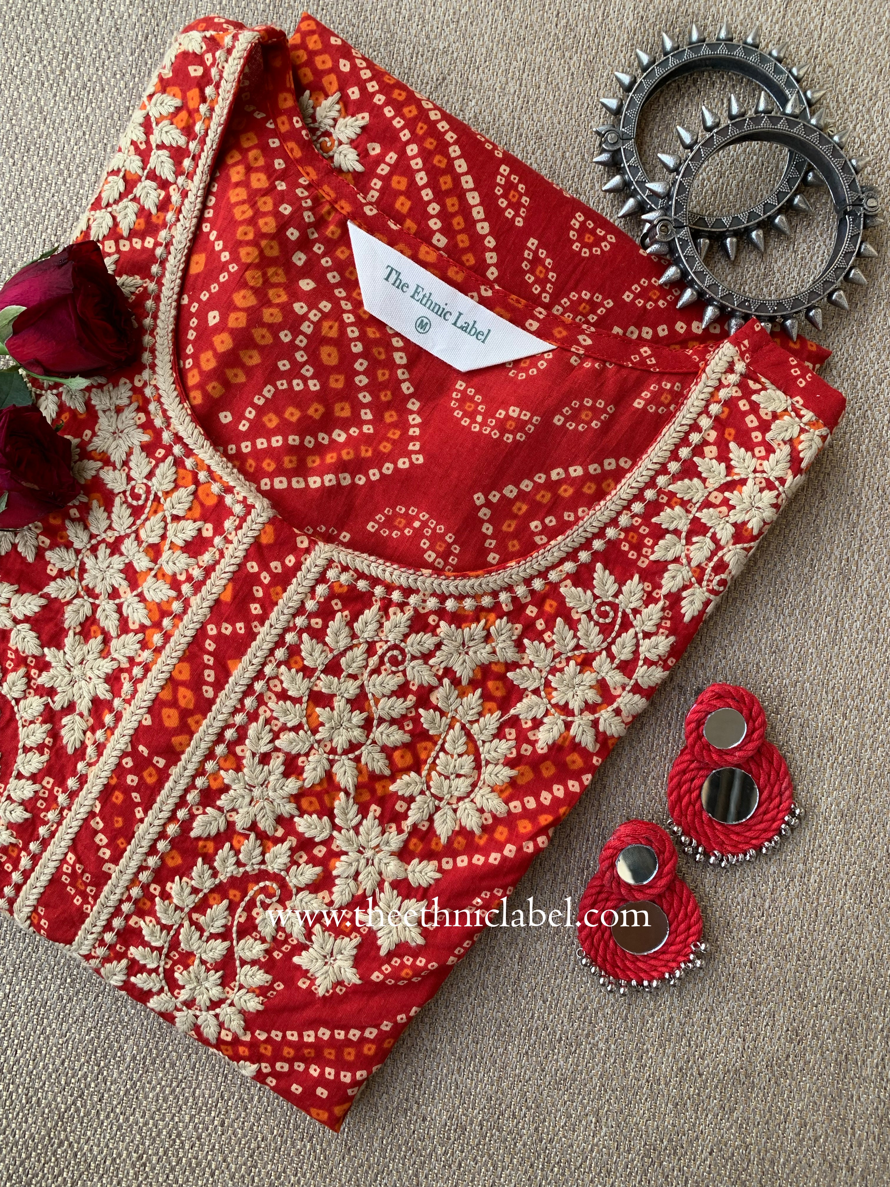 "Alankrita" Bandhani Red Embroidered Cotton Kurta