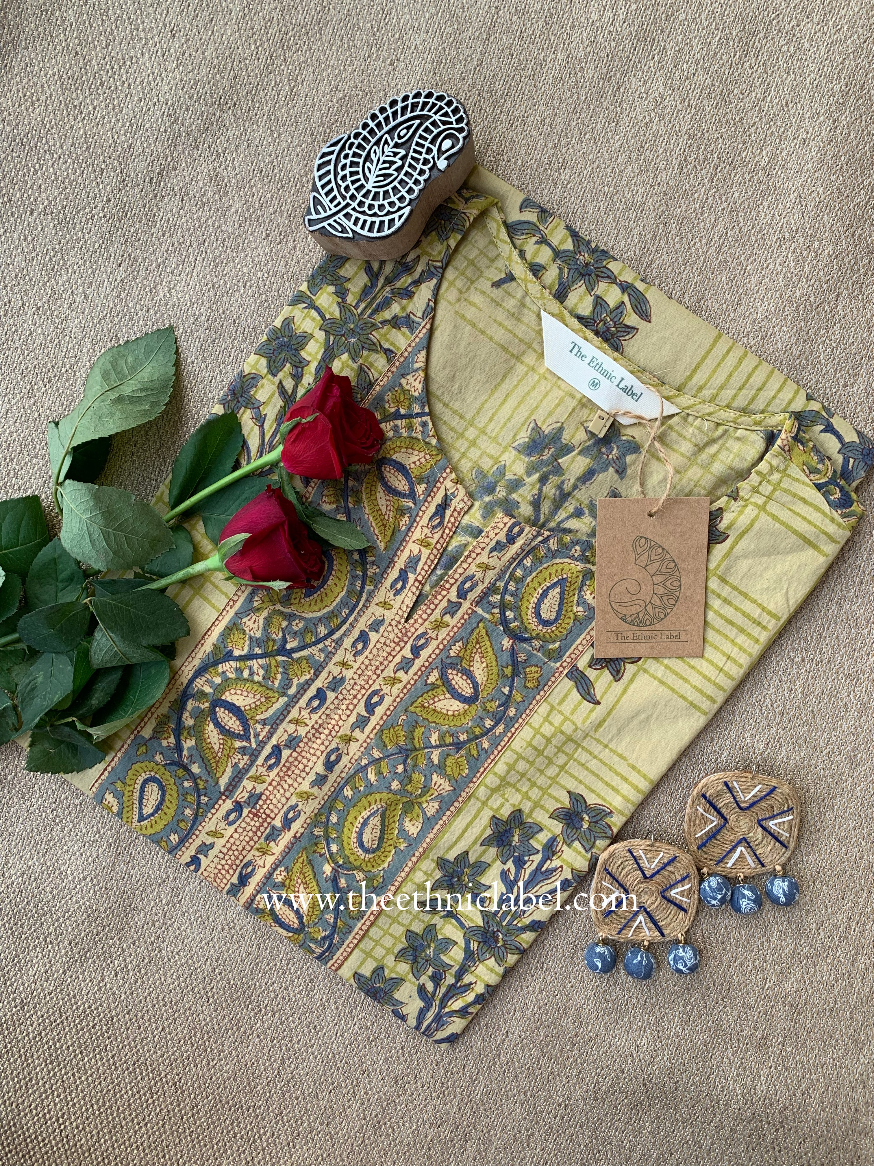 "Ananta" Hand Block Printed Beige Cotton kurta