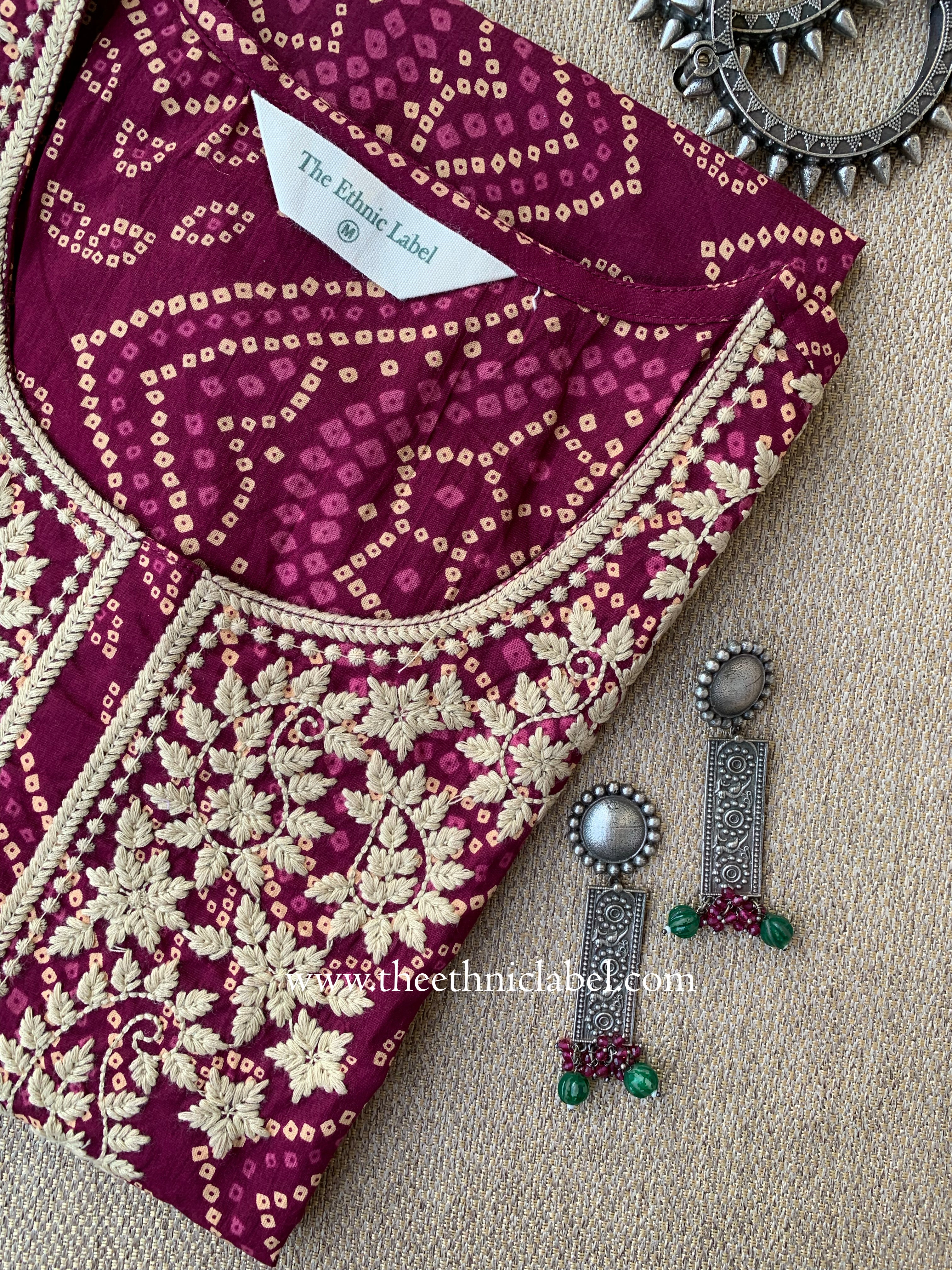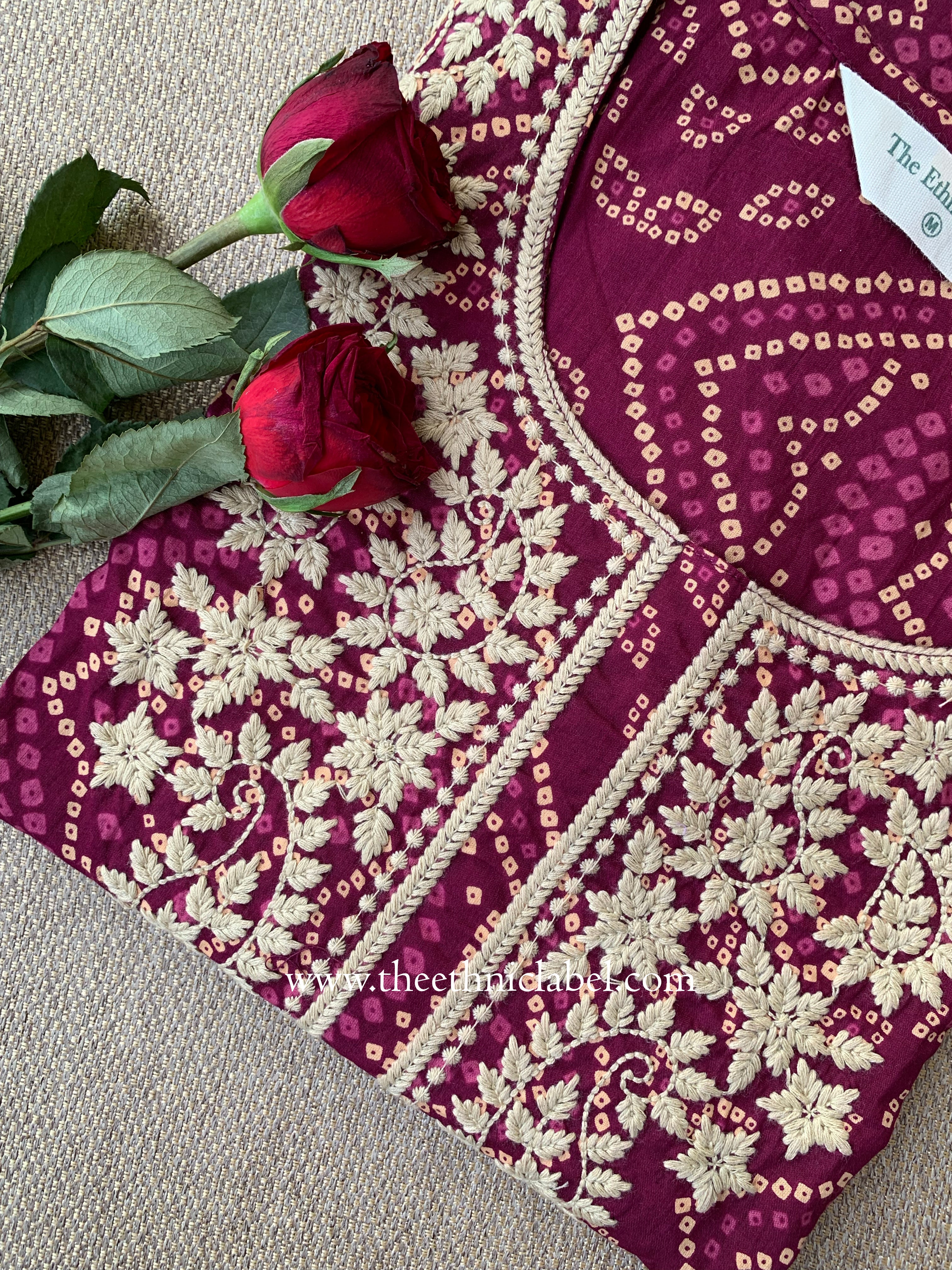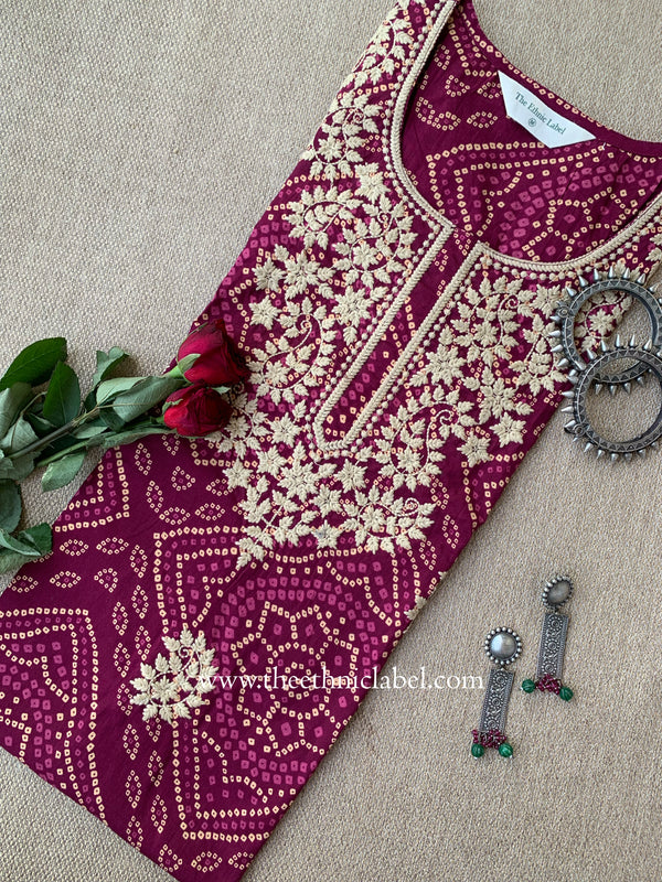"Rehza" Bandhani Magenta Embroidered Cotton Kurta