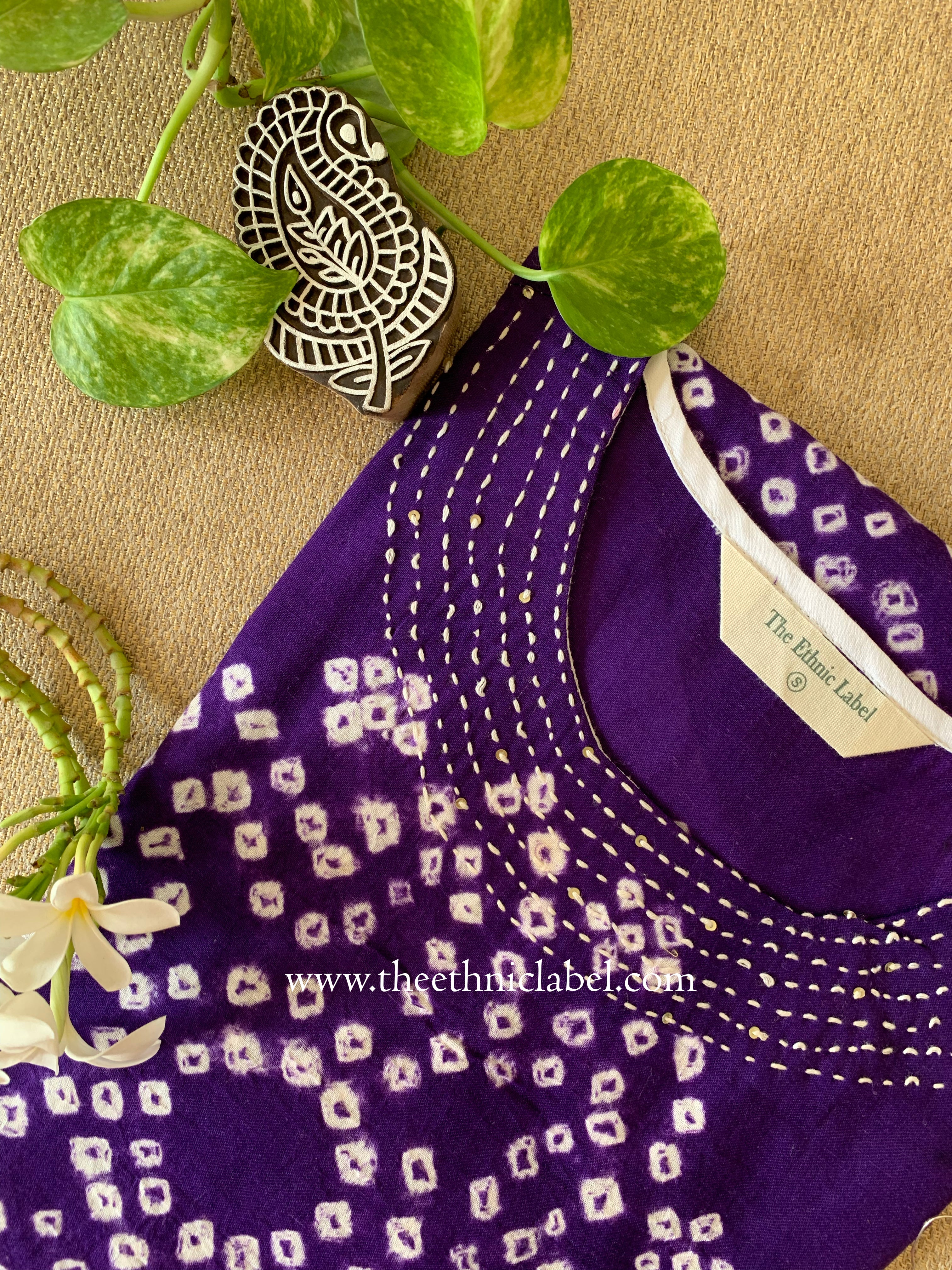 Minimal, classic and chic, this kurta is designed for all the days you want to keep things special and subtle. Inspired by the art of traditional bandhini , this kurta is a piece of art. The kurta comes with a round neck wirh delicate kantha work .