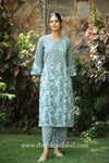 "Sakhi" Sea Green Hand Block Printed Cotton Kurta Pant Set(2 pc)