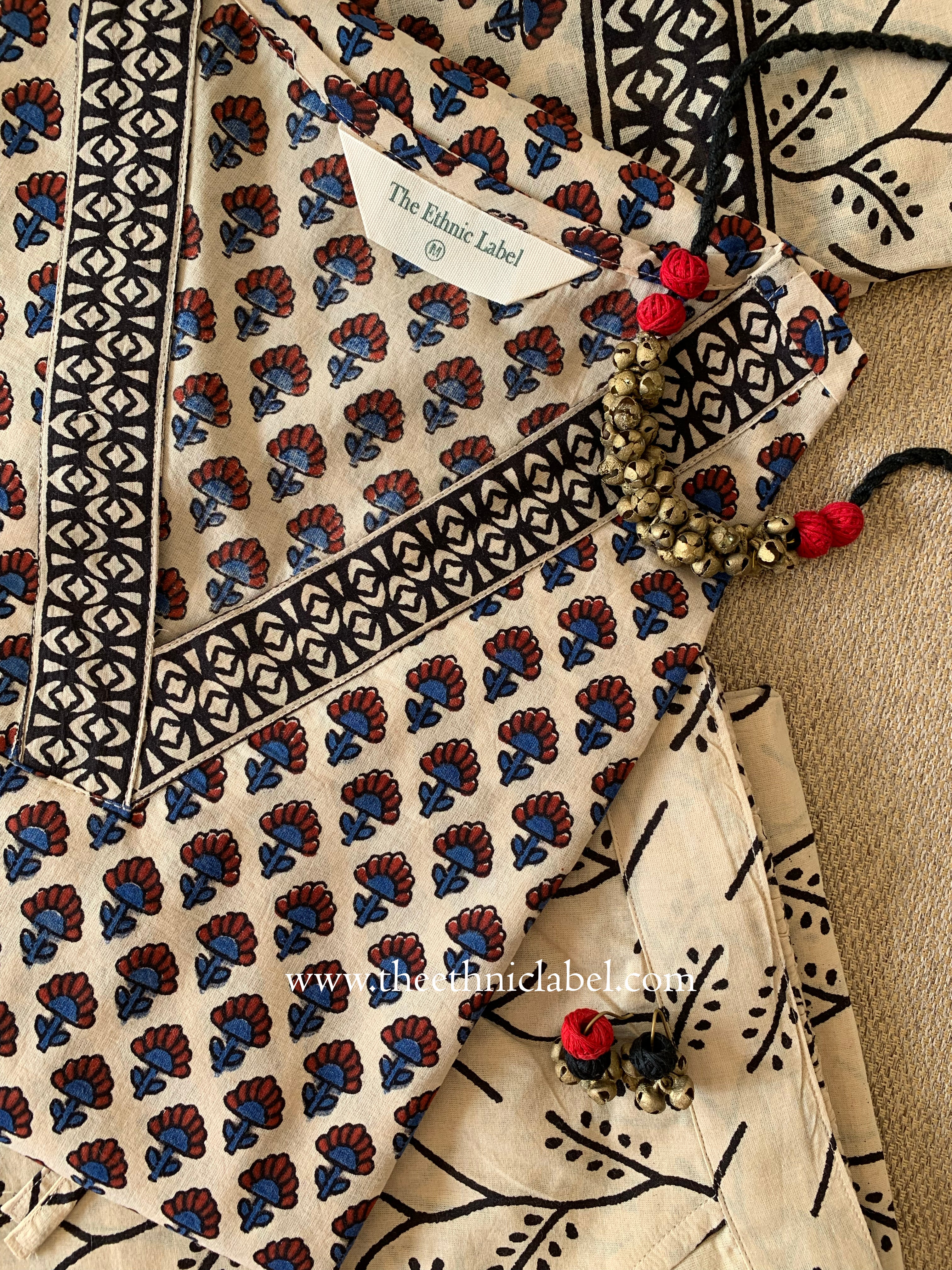 "Moksha" A Line Block printed Kurta with pants-2pc