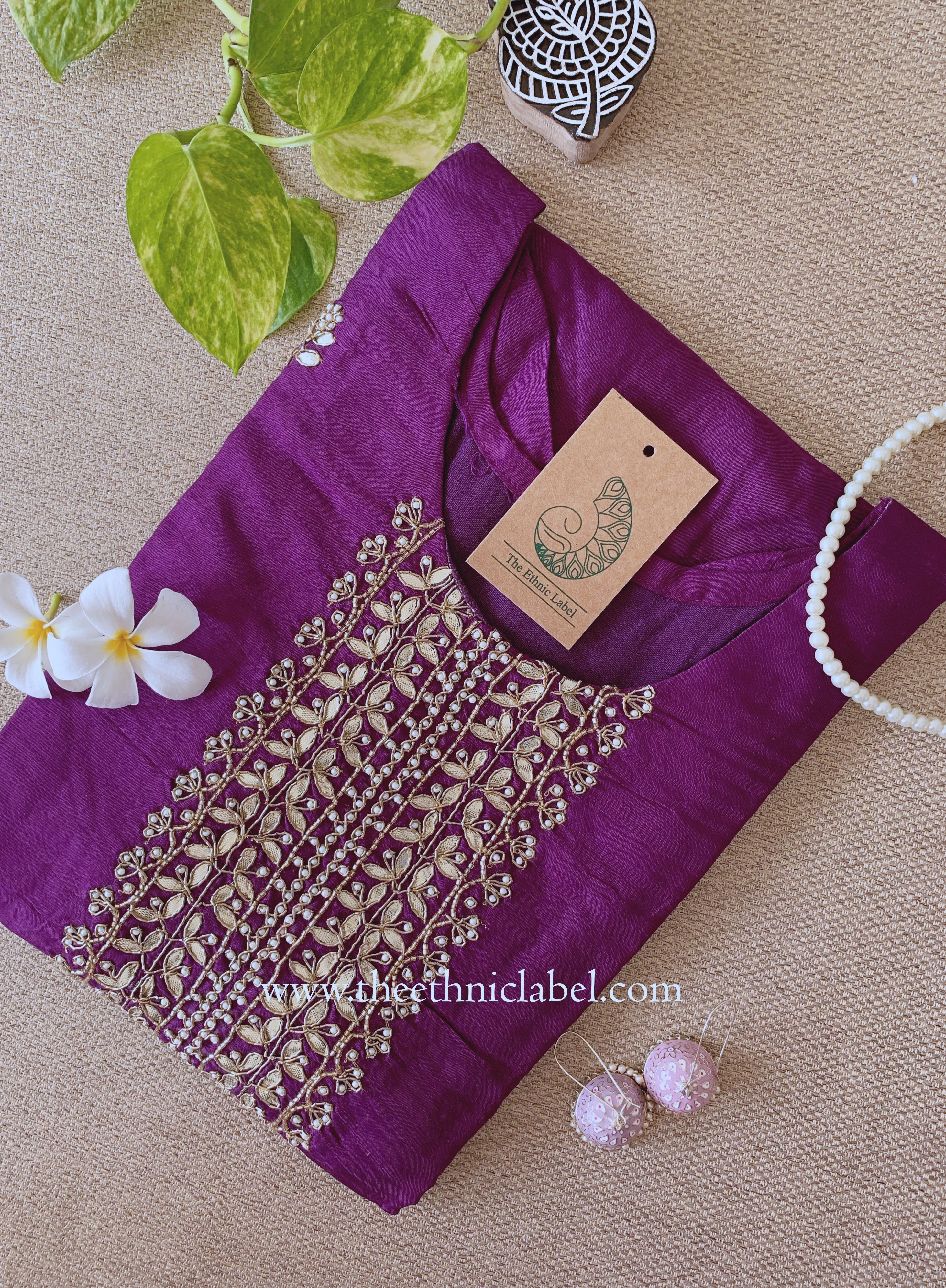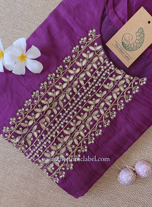 Crafted from the finest silk, the kurta boasts a lustrous and rich texture that drapes flawlessly, enveloping the wearer in an air of sophistication. The soft sheen of the silk adds an element of glamour, while the carefully chosen color palette complements the intricate embroidery beautifully.